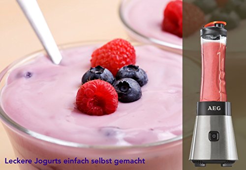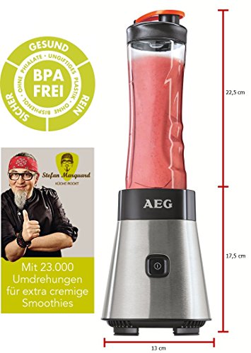 Selbst fruchtige Jogurts und leckere Pestos lassen sich mit diesem günstigen Powergerät aus dem Hause AEG zubereiten. Die Tritan Trinkflasche bleibt geschmacks- und geruchsneutral und kann nach der Nutzung leicht in der Spülmaschine von Resten befreit werden.