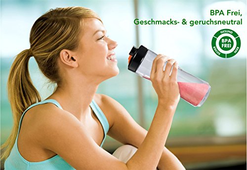 Aber auch Büroangestellte, die ihr Frühstück gemixt zur Arbeit mitnehmen möchten werden von der praktischen Flasche aus spülmaschinenfestem Tritan begeistert sein. Dieses ist ebenso bruchsicher und kratzfest wie Glas und bietet die gleiche Transparenz wie dieses. Zudem ist die Flasche skaliert, so dass man Zutaten leicht abstimmen und den Inhalt gut abmessen kann.