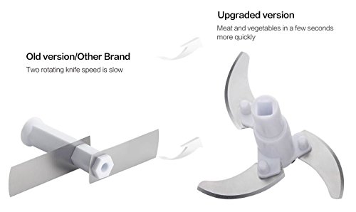 • MKQPOWER, Neues Modell, 3 Klingen, Obst - und Gemüse -Zerkleinerer, Universal-Zerkleinerer, Gemüse-Hacker kompakt und scharf, perfekt zum Zerkleinern von Obst und Gemüse sowie für Salsa, Salate, Dips, Pesto uvm. - 4