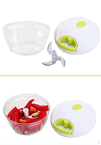 MKQPOWER, Neues Modell, 3 Klingen, Obst - und Gemüse -Zerkleinerer, Universal-Zerkleinerer, Gemüse-Hacker kompakt und scharf, perfekt zum Zerkleinern von Obst und Gemüse sowie für Salsa, Salate, Dips, Pesto uvm. - 1Der MKQPOWER Gemüse Zerkleinerer ist der Sieger in Sachen Preis und kann für eine kleinen Obolus erworben werden. Das Gerät ist mit einer scharfen Doppelklinge ausgestattet und zerkleinert Obst, Gemüse, aber auch Kräuter sehr zuverlässig. Darüber hinaus punktet der MKQPOWER Gemüse Zerkleinerer mit einem schicken Design in den Farben Grün und Weiß.